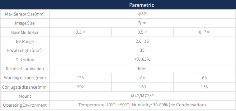 4K綫掃鏡頭最大支持φ32mm像面、超低畸變、防震設計、基準倍率覆蓋0.015~0.05X