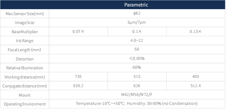 8K綫掃鏡頭最大支持φ64mm像面、超低畸變、防震設計、基準倍率覆蓋0.03X~0.9X