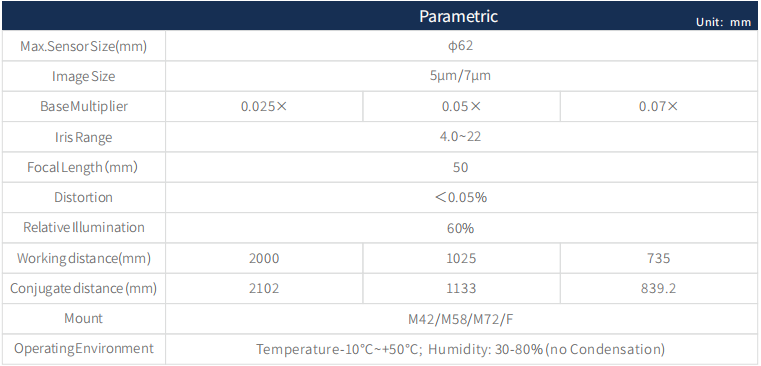 8K綫掃鏡頭最大支持φ64mm像面、超低畸變、防震設計、基準倍率覆蓋0.03X~0.9X