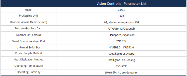 視覺控制器C2主要功能是尺寸量測(長度亮度高度等); 對位定位(印刷對位,樣品抓取,組裝貼合等;模式識別(條碼字元識別,錯漏反)
