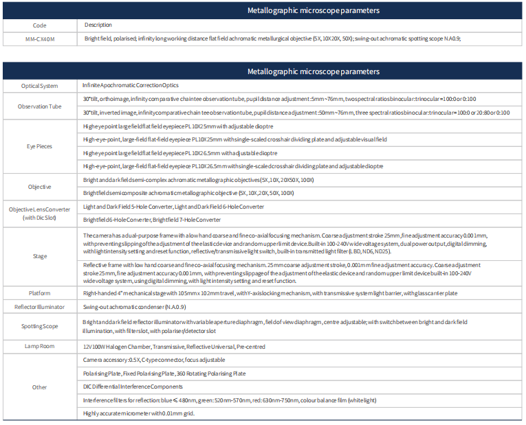 金相顯微鏡參數表