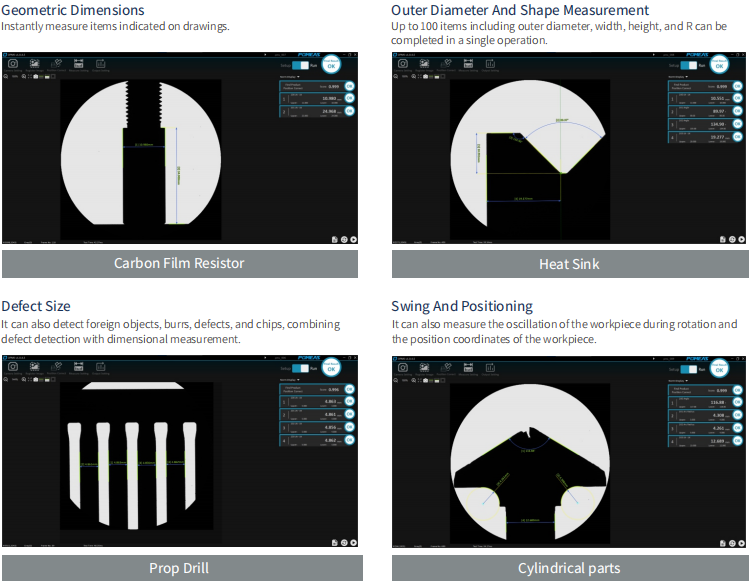 普密斯在綫圖像測量儀HM繫列⽀持多種測量,在多⾏業均具有⾼度通⽤性,在綫智能尺寸檢測、更快、更準。